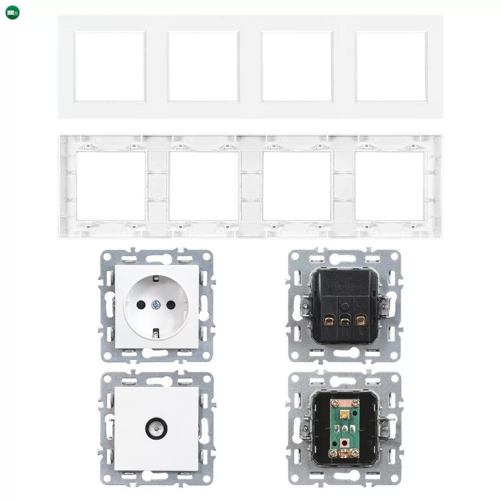 • Kialakítás: Keret nélküli modul fehér négyes kerettel