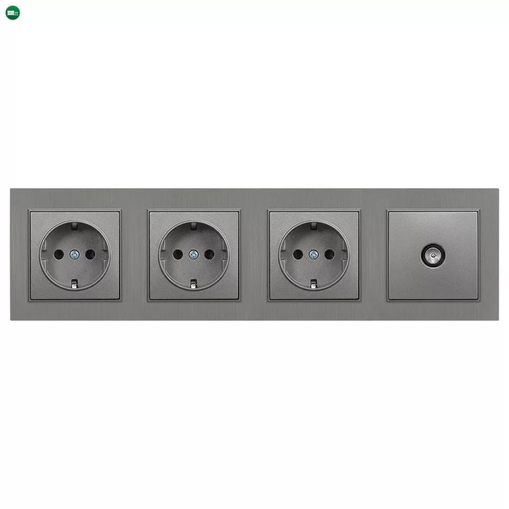 - Típus: Hármas földelt csatlakozóaljzat (2P+F, F típus) + 1 × TV RF aljzat