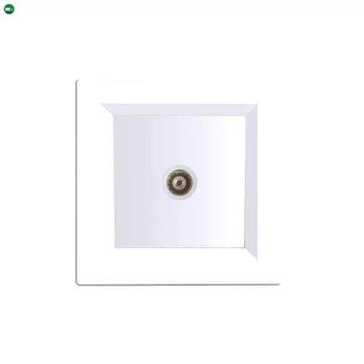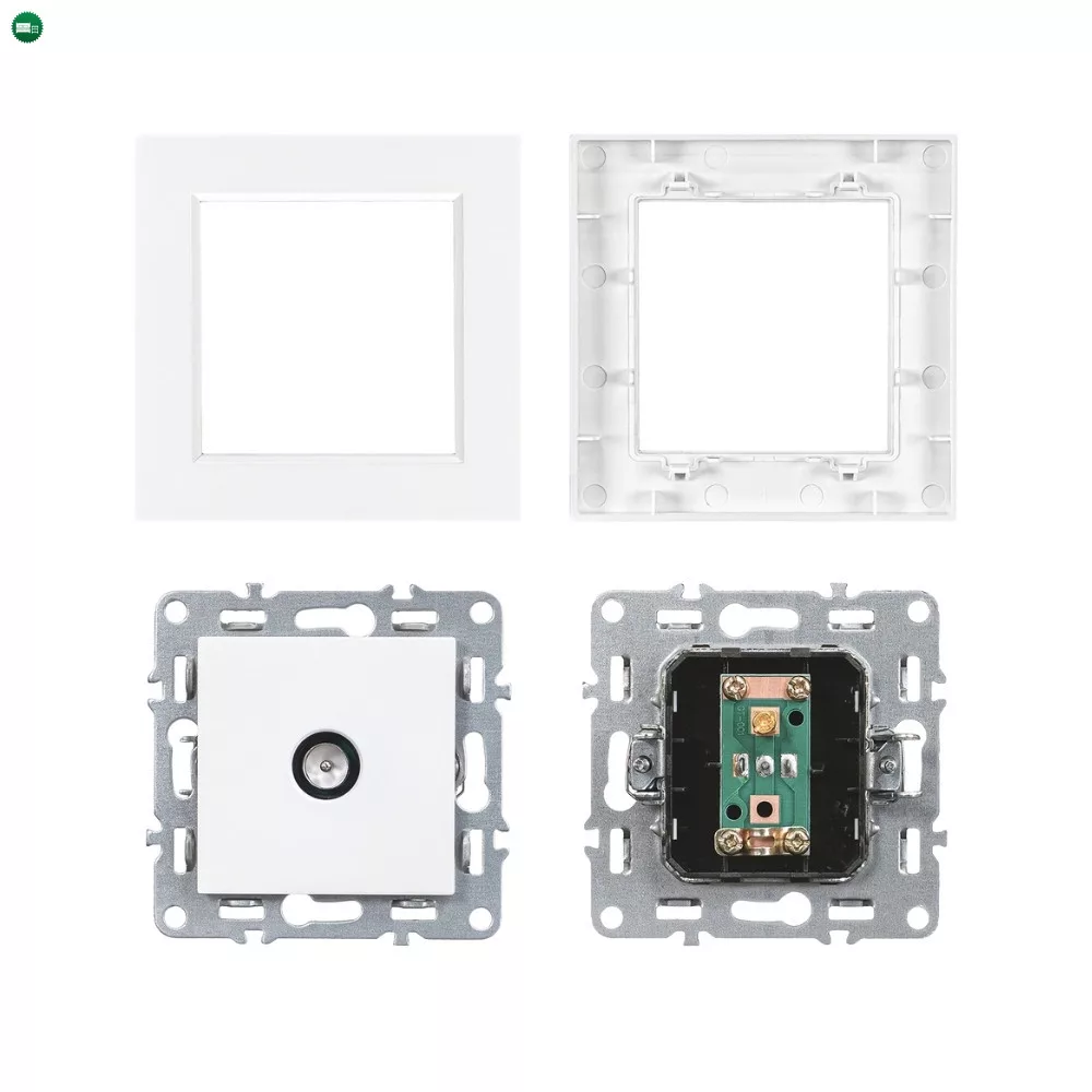 Ez a termékváltozat gyárilag tartalmazza a fehér színű egyes keretet, így nem szükséges külön keretet vásárolni. A lekerekített peremű, kompakt 83 × 83 mm-es kivitel vizuálisan harmonikusan illeszkedik a modern enteriőrökbe, legyen szó otthoni vagy irodai környezetről.