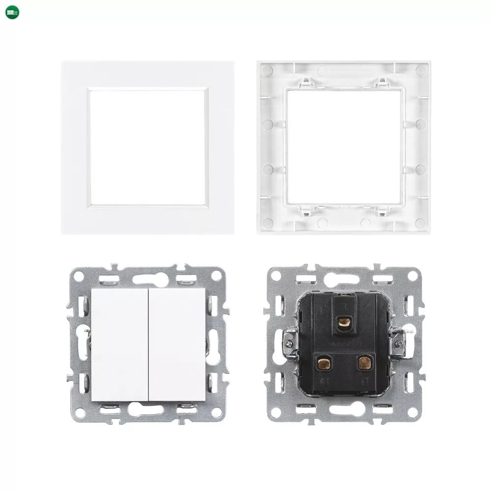 - Típus: Két egypólusú billentyűt tartalmazó csillárkapcsoló (kétgombos)