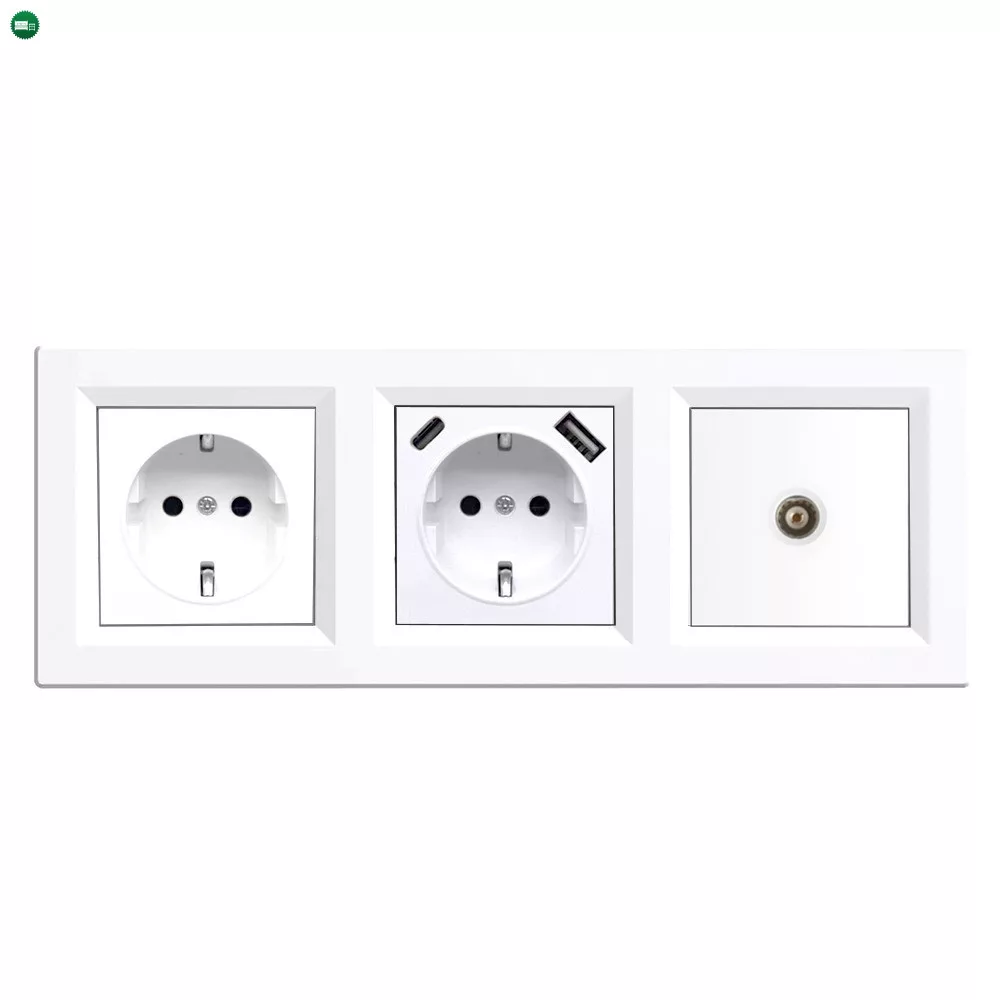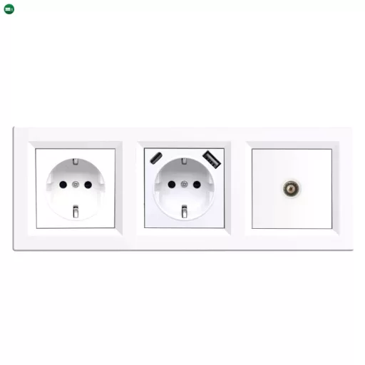 Nova földelt csatlakozóaljzat dugalj, USB, TV csatlakozóval fehér kerettel – Komplett megoldás egy stílusos és funkcionális fali szerelvényrendszerhez