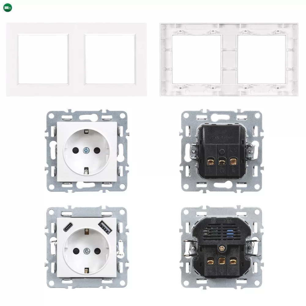 A Nova földelt csatlakozóaljzat USB csatlakozóval fehér kerettel ideális választás olyan helyiségekbe, ahol egyszerre szükséges hagyományos 230 V-os elektromos csatlakozás és gyors, adapter nélküli USB töltés. Az USB-A és USB-C portok segítségével közvetlenül csatlakoztatható mobiltelefon, fülhallgató, okosóra és más kisebb fogyasztású eszköz – külön hálózati adapter nélkül.