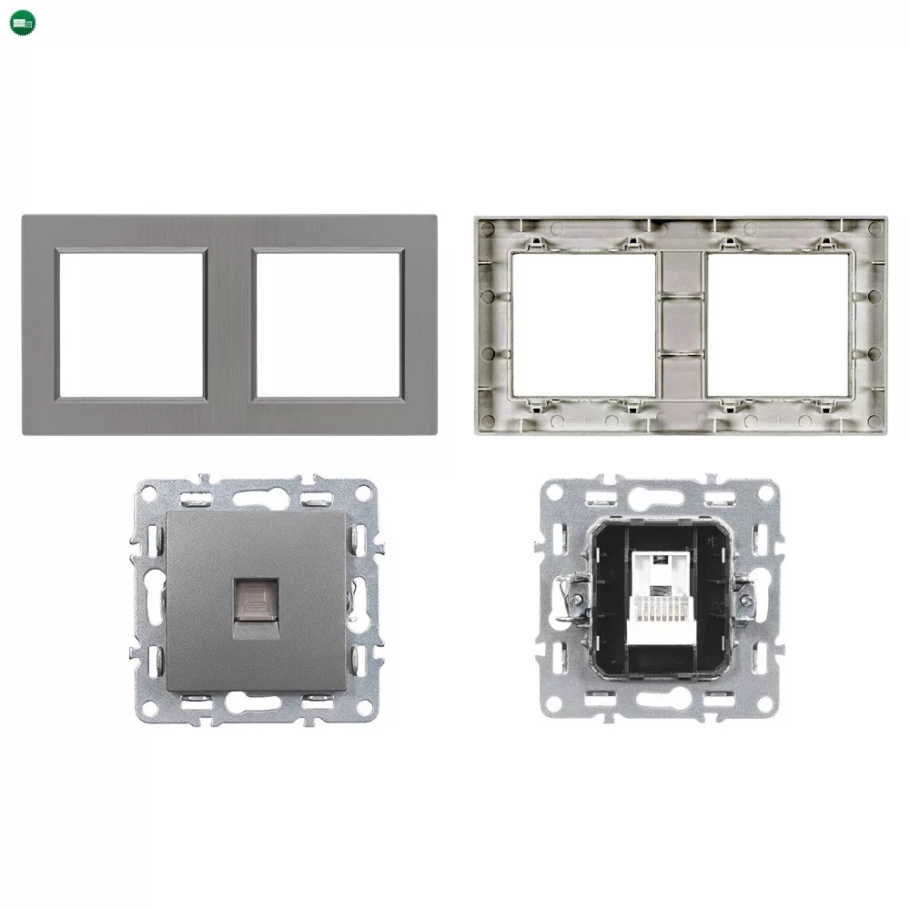 A Nova szerelvénycsalád minden eleme úgy lett kialakítva, hogy funkcióban és dizájnban is tökéletesen illeszkedjen egymáshoz. A dupla UTP aljzat tökéletes kiegészítője lehet a Nova kapcsolóknak, földelt dugaljaknak, TV- vagy USB aljzatoknak – így a teljes elektromos és adatátviteli rendszered egységes megjelenést és professzionális működést nyújt.