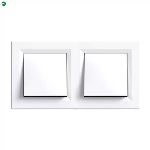 A váltókapcsoló süllyesztett kivitelben készül, így esztétikusan illeszkedik a fal síkjába. A dupla fehér keret lekerekített peremével modern, mégis visszafogott megjelenést biztosít, amely bármilyen enteriőrbe könnyedén beilleszthető. A kapcsolók működése precíz és finoman érezhető – egyértelmű visszajelzést ad minden kapcsoláskor.
