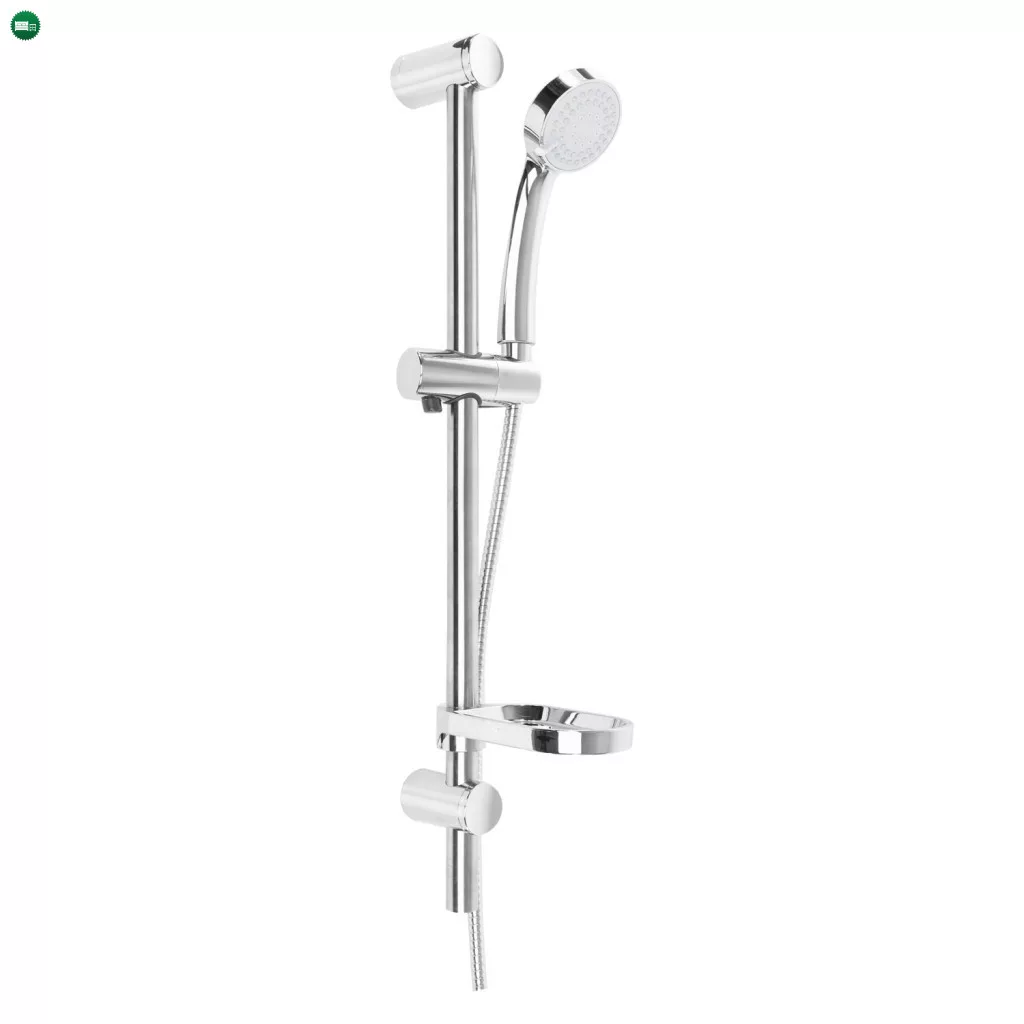 A rúd ütésálló, krómozott ABS-borítású; a PVC-tömlő belsejében sima falú járat található, amelyben kevésbé tapad meg a vízkő. A teljes szett porszórt krómkupakkal rejti a csavarokat, így a dizájn homogén marad.