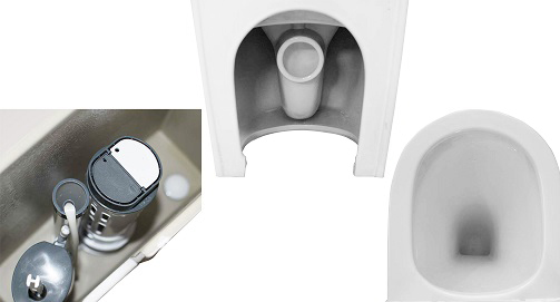 A komplett Paulo wc elemei: csésze, tartály, szerelvény, ülőke