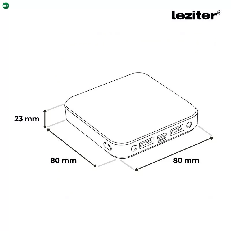 - Méretek: 80 × 80 × 23 mm – kompakt, zsebben vagy táskában hordozható