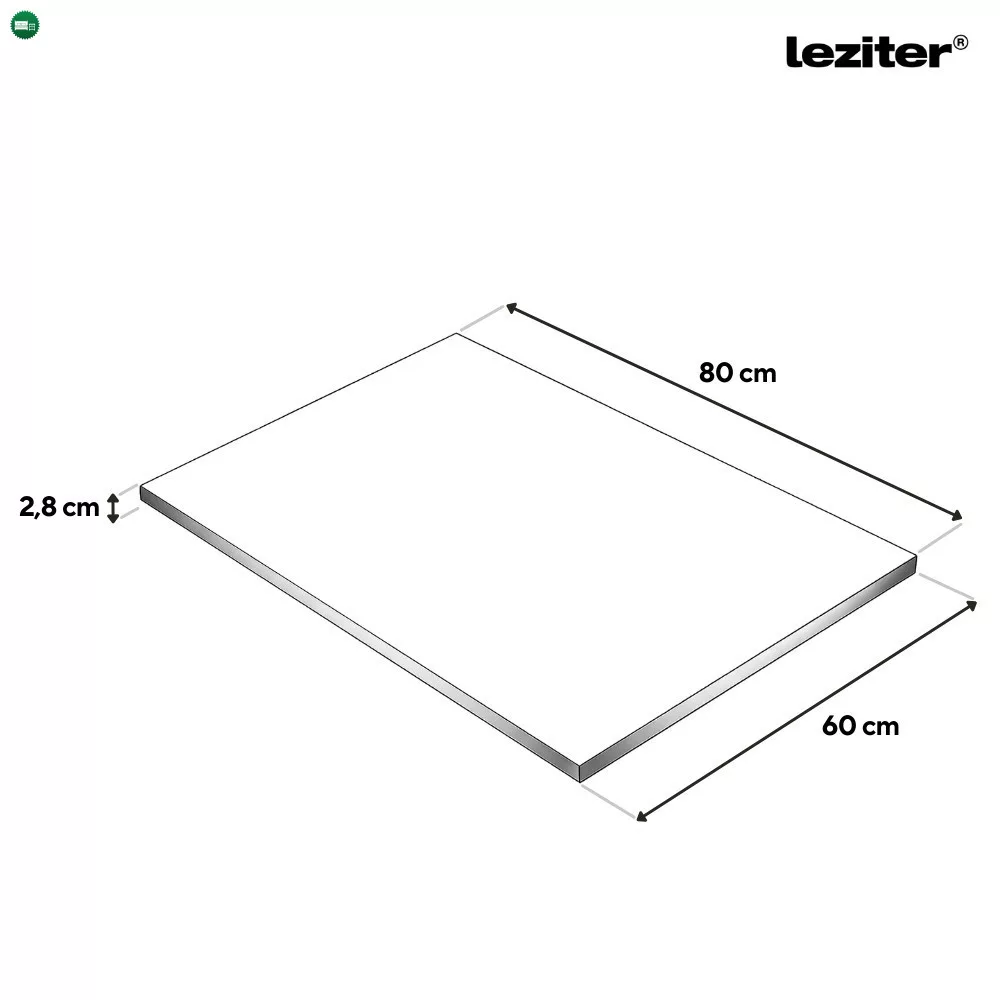 A munkalap 80 × 60 cm méretű, 28 mm vastag, ami stabil és megbízható munkafelületet nyújt a mindennapi konyhai használat során. A laminált felület strapabíró, könnyen tisztítható, a színazonos dekor élzárás pedig esztétikus megjelenést és hosszabb élettartamot biztosít.
