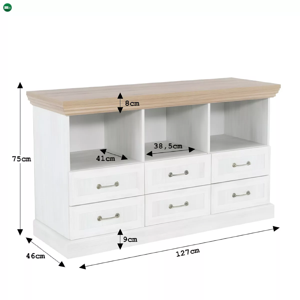 TV-állvány ROYAL RS hat fiókkal és három polccal az elegáns provence-i stílusú Royal elemes bútorcsaládból