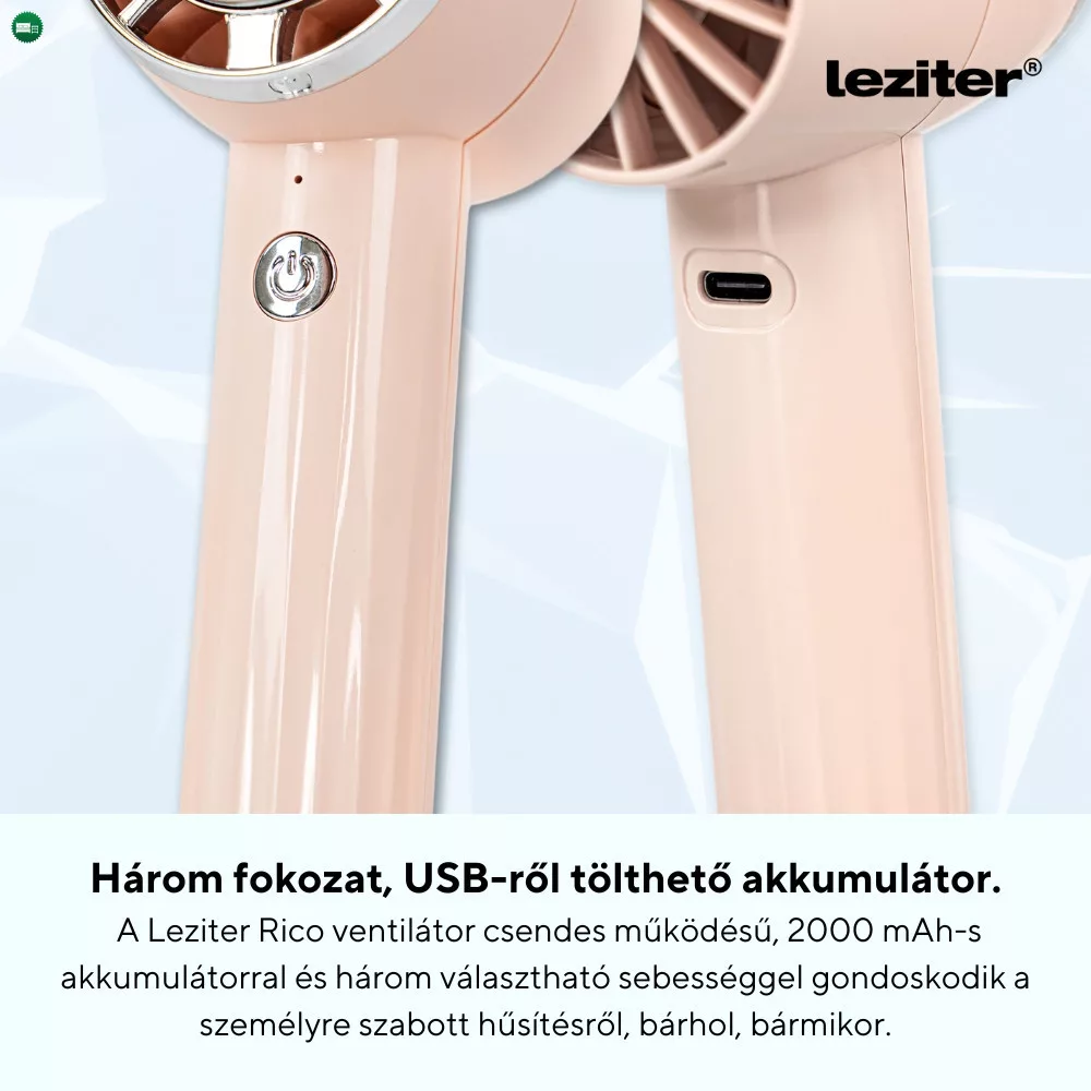 Leziter Rico kézi hordozható USB ventilátor nyári hűsítéshez – bárhol, bármikor
