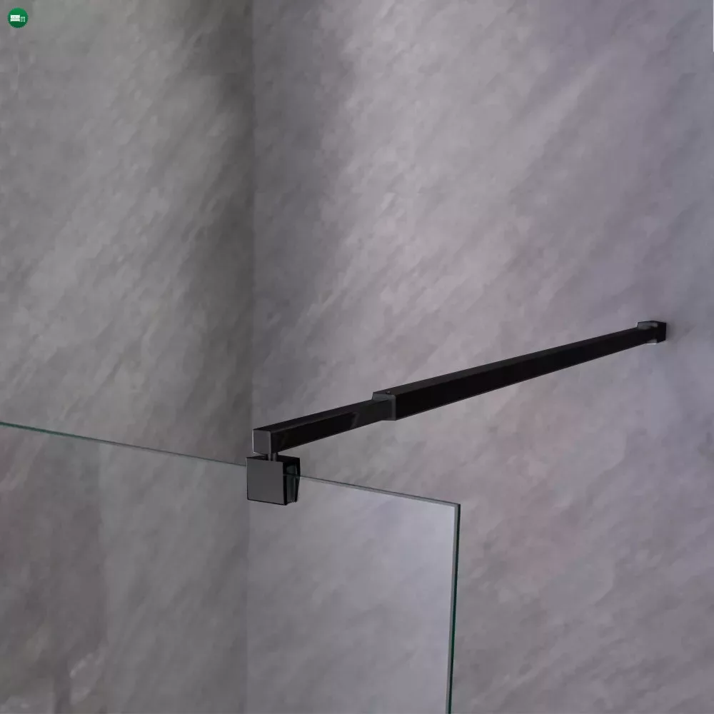 Zuhanyfal fekete profillal és méretre vágható távtartó rúddal