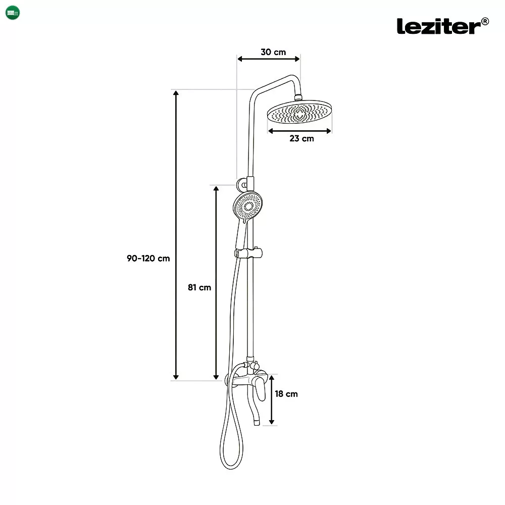 A Leziter Sena zuhanyszett azok számára készült, akik a mindennapi zuhanyzást is élménnyé szeretnék varázsolni. A letisztult szürke kivitel azonnal elegáns, prémium hatást kelt, így nemcsak funkcionális, de látványos kiegészítője lesz bármely fürdőszobának. A matt felület modern, trendi megjelenést nyújt, miközben könnyen illeszthető klasszikus és minimalista enteriőrbe is.