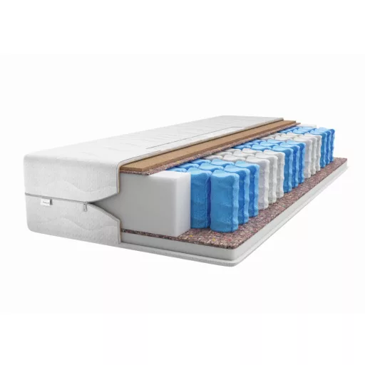 Kókusz - kókuszrostok biztosítják a matrac fokozott keménységét és tartósságát. Tartós, deformációálló hipoallergén poliuretán hab. A testhez alkalmazkodó zsebrugók - pontrugalmasság és a matrac csillapított működése. A filc meghosszabbítja a matrac élettartamát – kiváló szigetelés a rugók és a habréteg között.