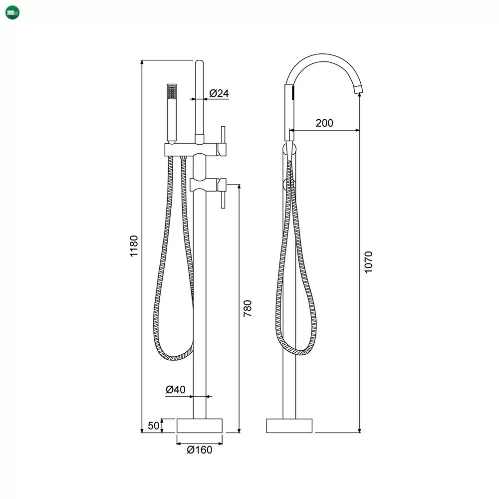 - Anyagok: Sárgaréz csaptelep cink kezelővel, – rozsdamentes acél alapzat, – rozsdamentes acél csővezeték, – rozsdamentes acél kézizuhany