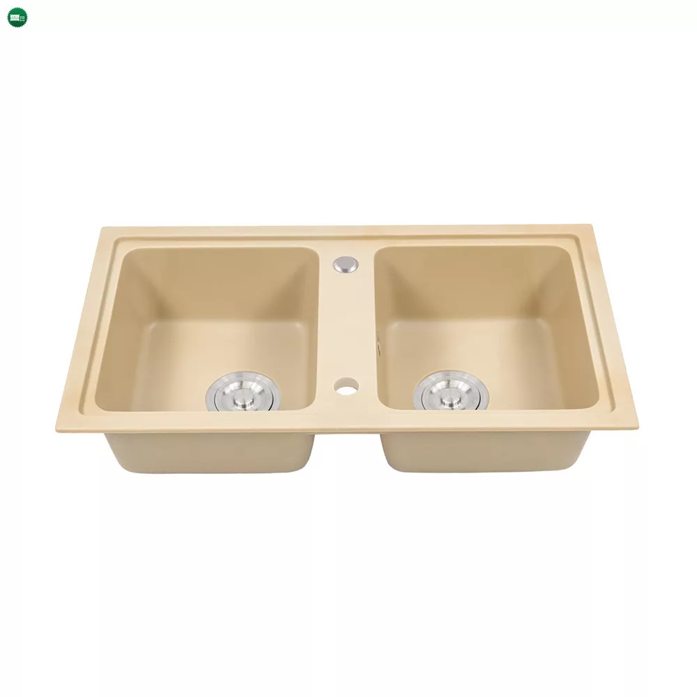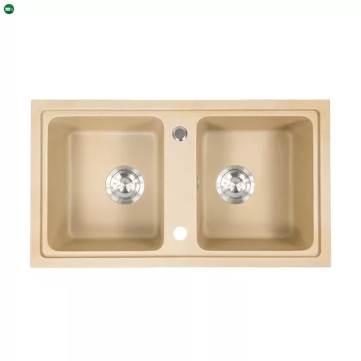 A Tia szögletes két medencés gránit mosogató bézs színben a konyhád új központi elemévé válik. Két medence biztosítja a kényelmes és hatékony munkavégzést, miközben a Bézs gránit kivitelezés az elegancia és a stílus jegyében tündököl.