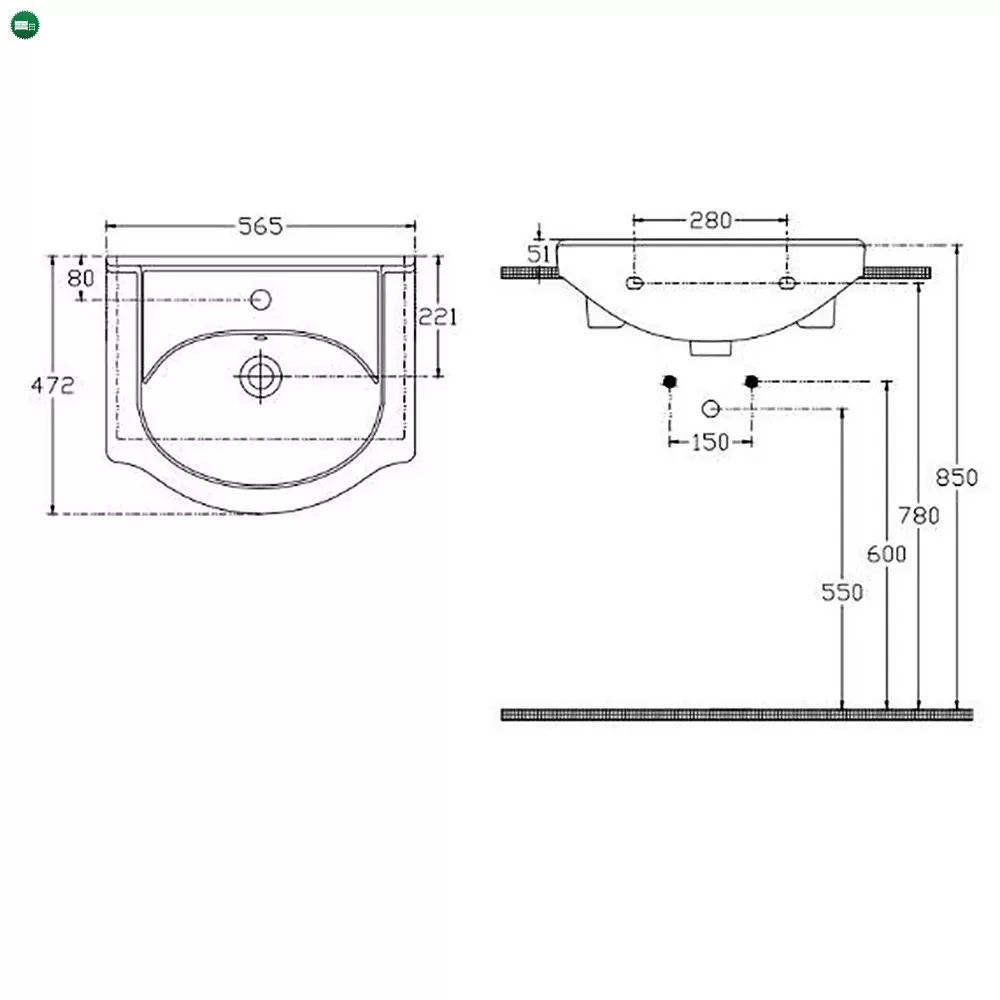 A V55 szárnyas kerámia mosdó számos pozitív tulajdonsággal rendelkezik. Ezek közé tartozik a tökéletesen letisztult körvonalak és az egyenes rakodófelületek. Csaplyukkal és túlfolyókkal rendelkezik. A mosdó 565x472 mm-es.