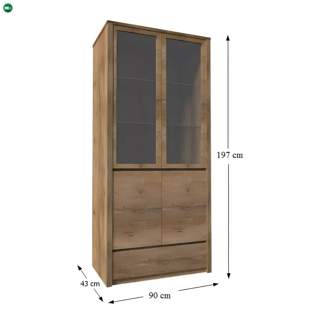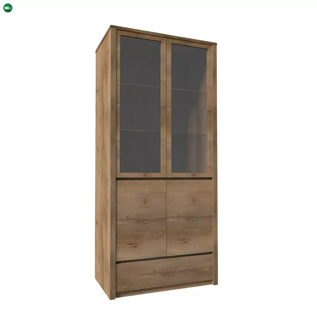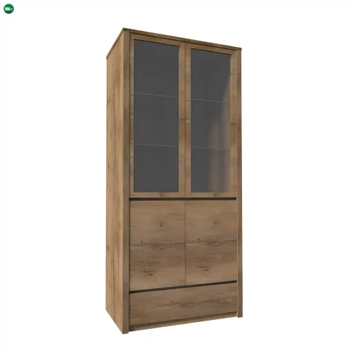 Kétajtós vitrin üvegajtóval és fiókkal - a modern elemes MONTANA garnitúránkból