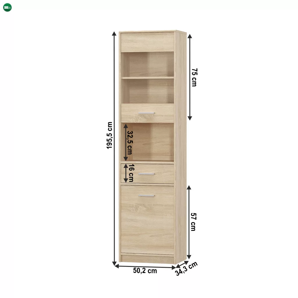 Méretek (SzéxMéxMa): 50,2x34,3x195 cm