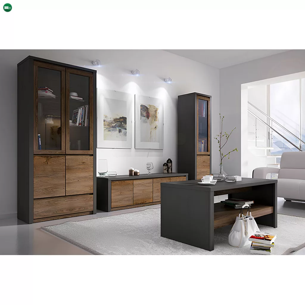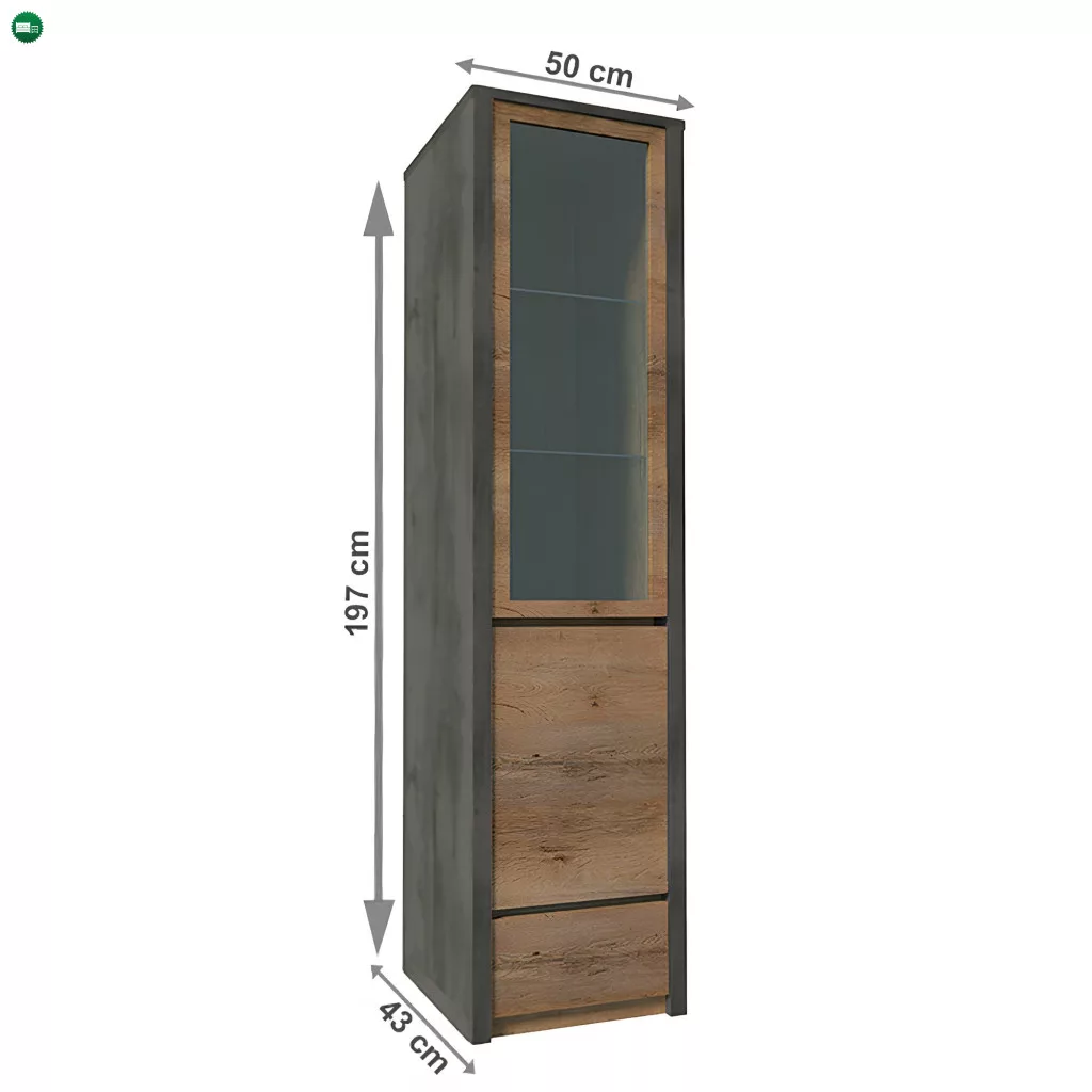Vitrines szekrény, tölgy lefkas sötét/smooth szürke, MONTANA W1D