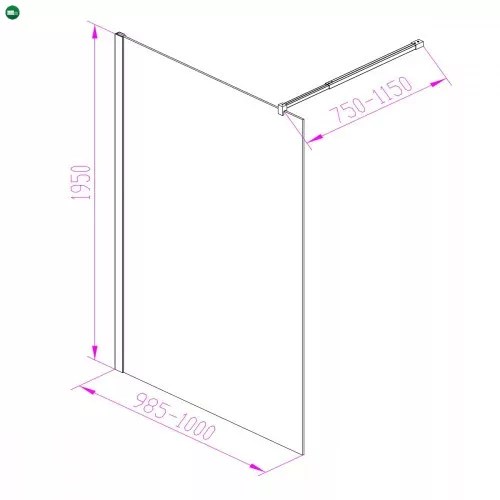 - Típus: 100x195 cm Walk-In zuhanyfal, 8 mm edzett biztonsági üveg, krómozott alumínium profillal