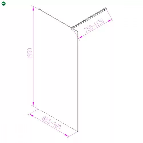 - Típus: 90x195 cm Walk-In zuhanyfal, 8 mm edzett biztonsági üveg, krómozott alumínium profillal