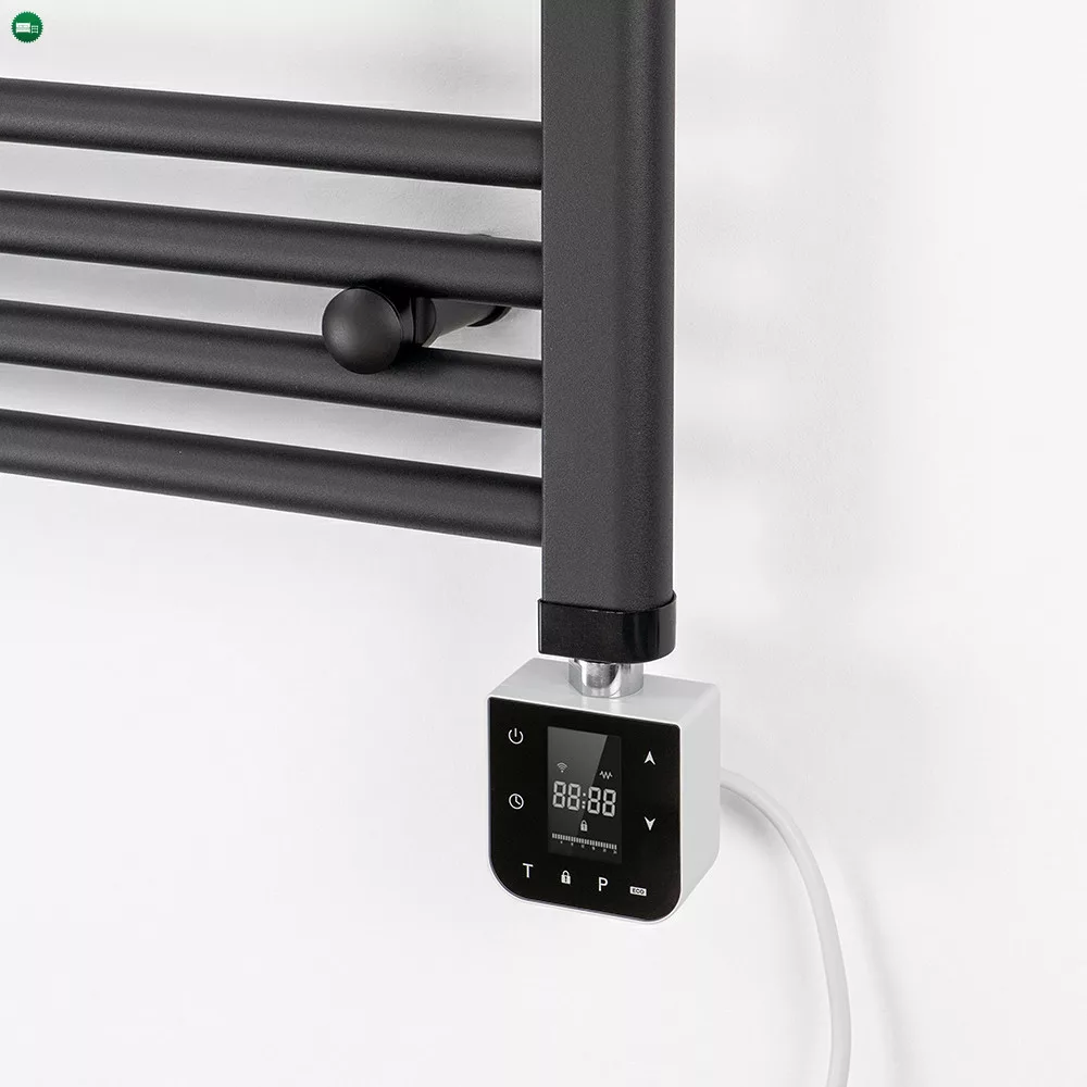 WiFi-s fűtőpatron törölközőszárító radiátorhoz digitális hőfokszabályozóval 400W fehér – okos vezérlés, modern design, maximális kényelem