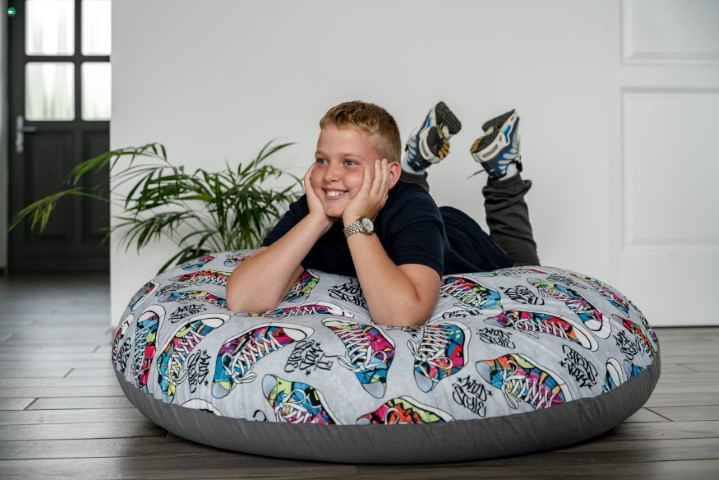 Ennek a gyerekhentergő babzsáknak a formáját imádják a gyerekek. Ha simán lefekteted, akkor egy nagy kerek babzsák párnát kapsz belőle, ha pedig „élére” állítod, akkor a kisebbeknek jó kis babzsák fotel alakítható ki belőle. Imádják húzni-vonni, ugrálni bele, vagy csak úgy elterülni, és hallgatni apa-anyától a mesét. Aztán el is szenderülnek könnyen!