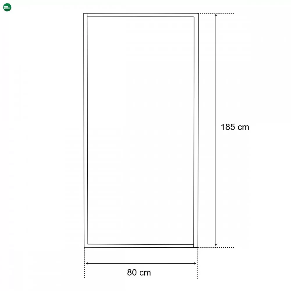 A zuhanyfal krómozott alumínium kerettel és 5 mm-es víztiszta edzett biztonsági üveggel van ellátva. A modell 80 cm-es szélességgel és 185cm-es magassággal rendelkezik.