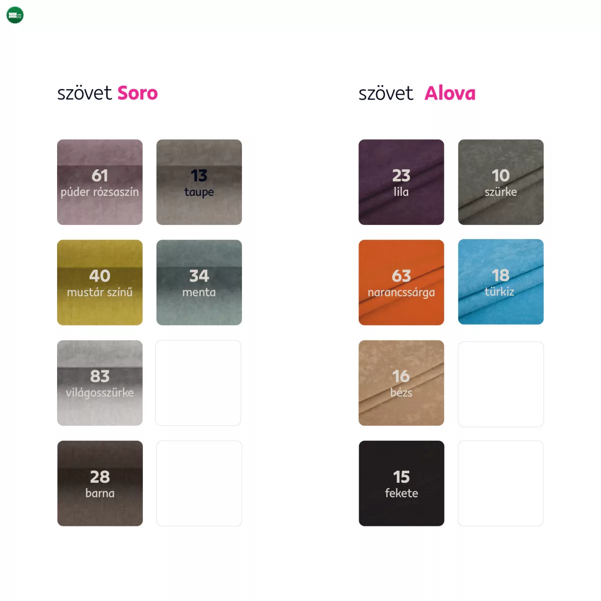 Megrendelhető Astrid Alova szövet színváltozataiban ára 179 500 Ft vagy Soro szövetből ára 181 900 Ft. Egyedi megrendelés esetén szükség van az adott összegnek a 20%-át befizetni,mint előleg. Az előleg befizetése után az Ön követelményét benyújtjuk a gyártónak. Szállítási idő 6-8 hét.