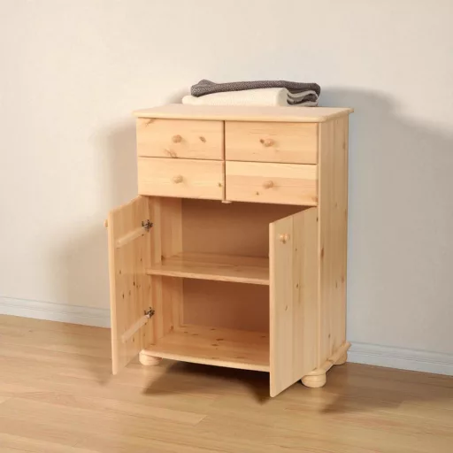 Az Anikó 4 kisfiókos 2 ajtós komód ívelt kialakításával a klasszikus vonalakat követi.