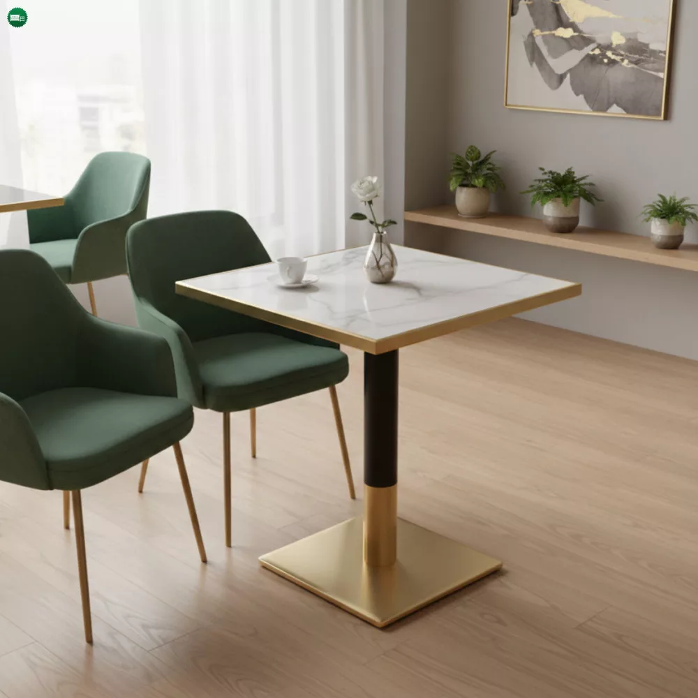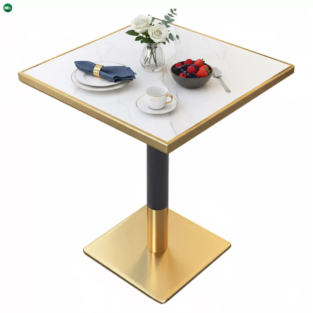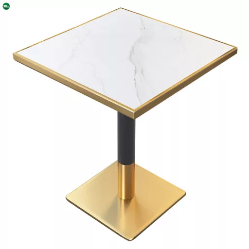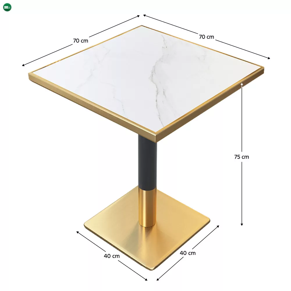 Bisztró asztal étkezőbe, fehér márvány/fekete/arany, 70x70 cm, PRESTON
