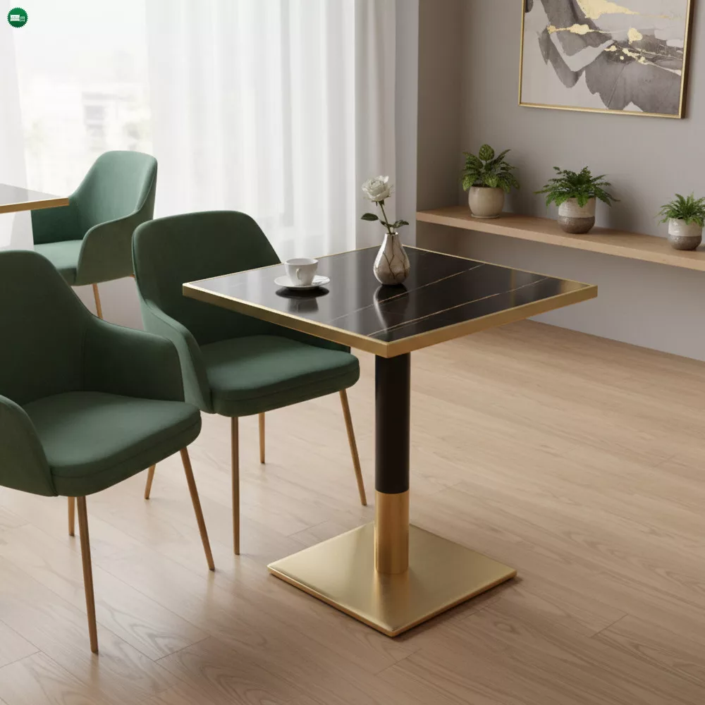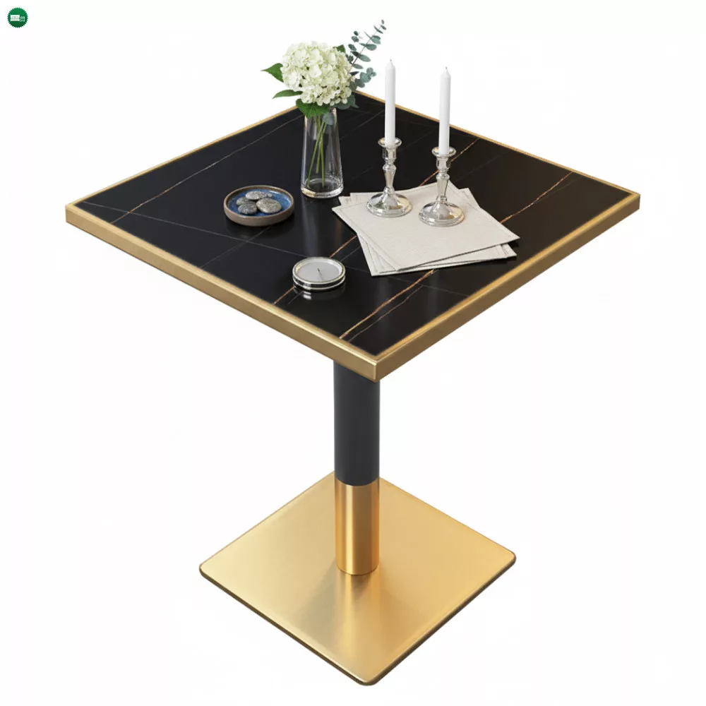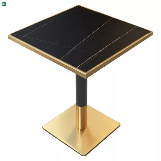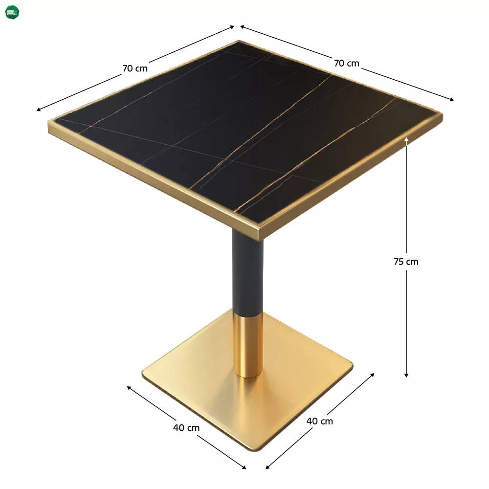 Bisztró asztal étkezőbe, fekete márvány/fekete/arany, 70x70 cm, PRESTON