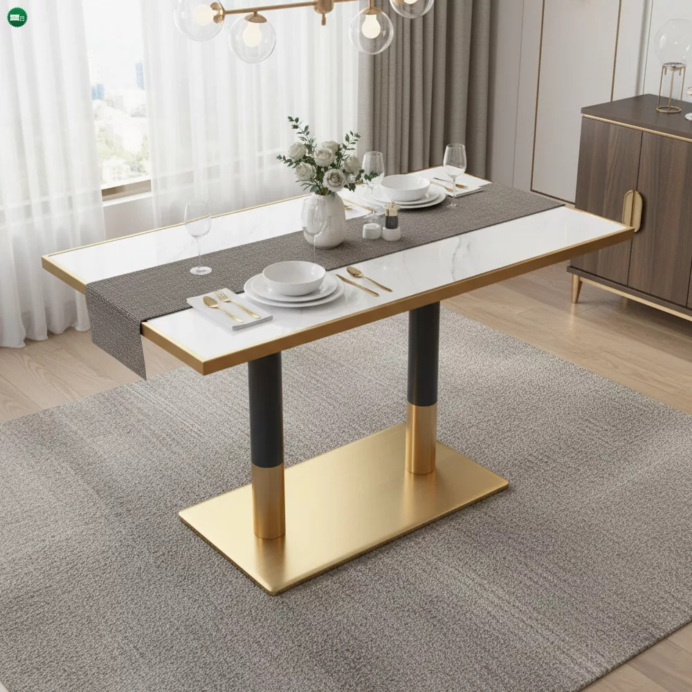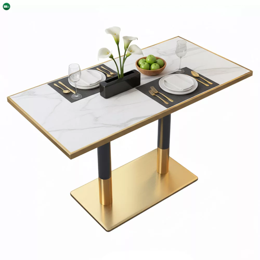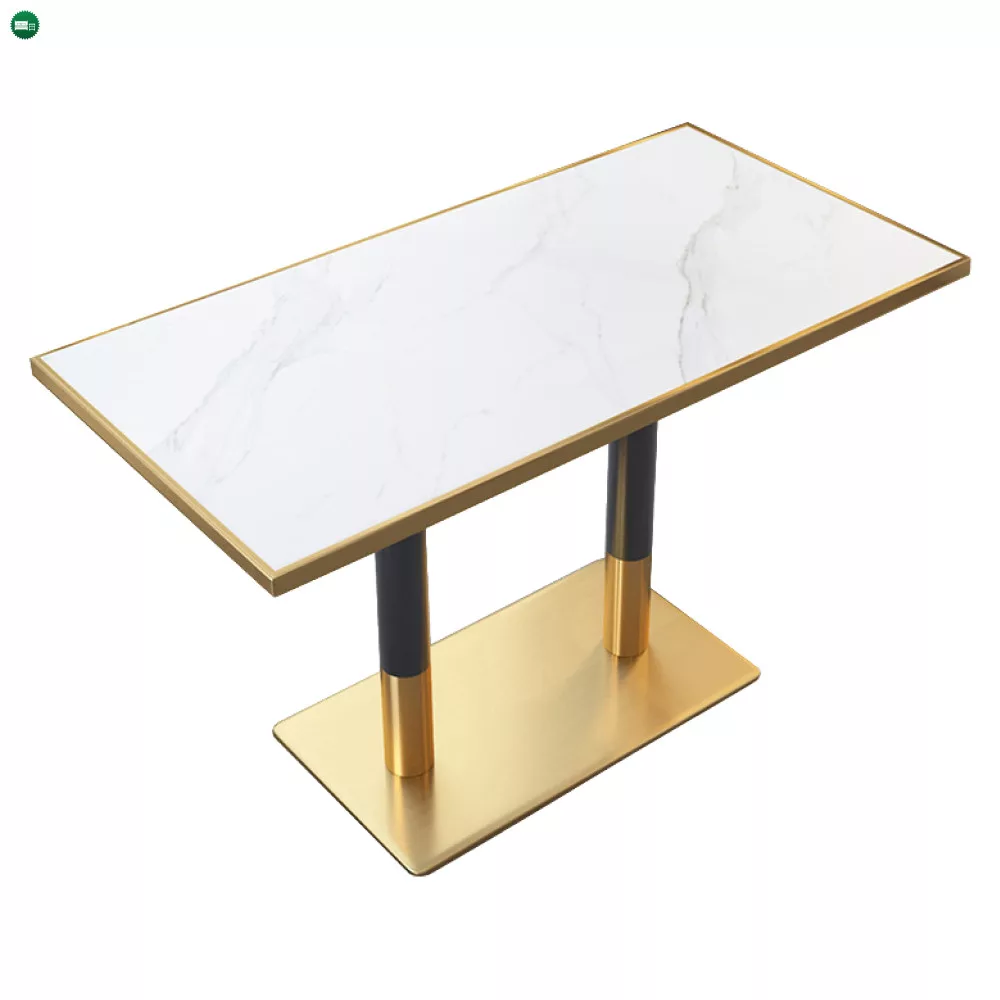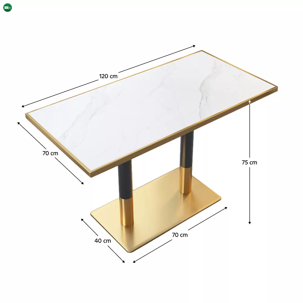Bisztró asztal étkezőbe, fehér márvány/fekete/arany, 120x70 cm, DARIAN