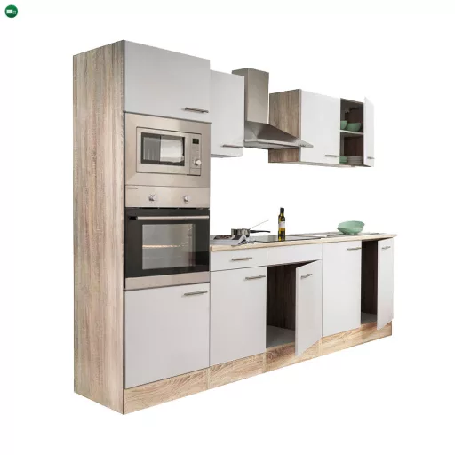 Yorki 270 konyhablokk sonoma tölgy korpusz,selyemfényű fehér fronttal. A tökéletes konyha megteremtője!