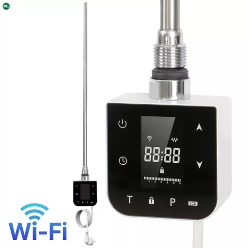 WiFi-s fűtőpatron törölközőszárító radiátorhoz digitális hőfokszabályozóval 800W fehér – intelligens irányítás, modern elegancia