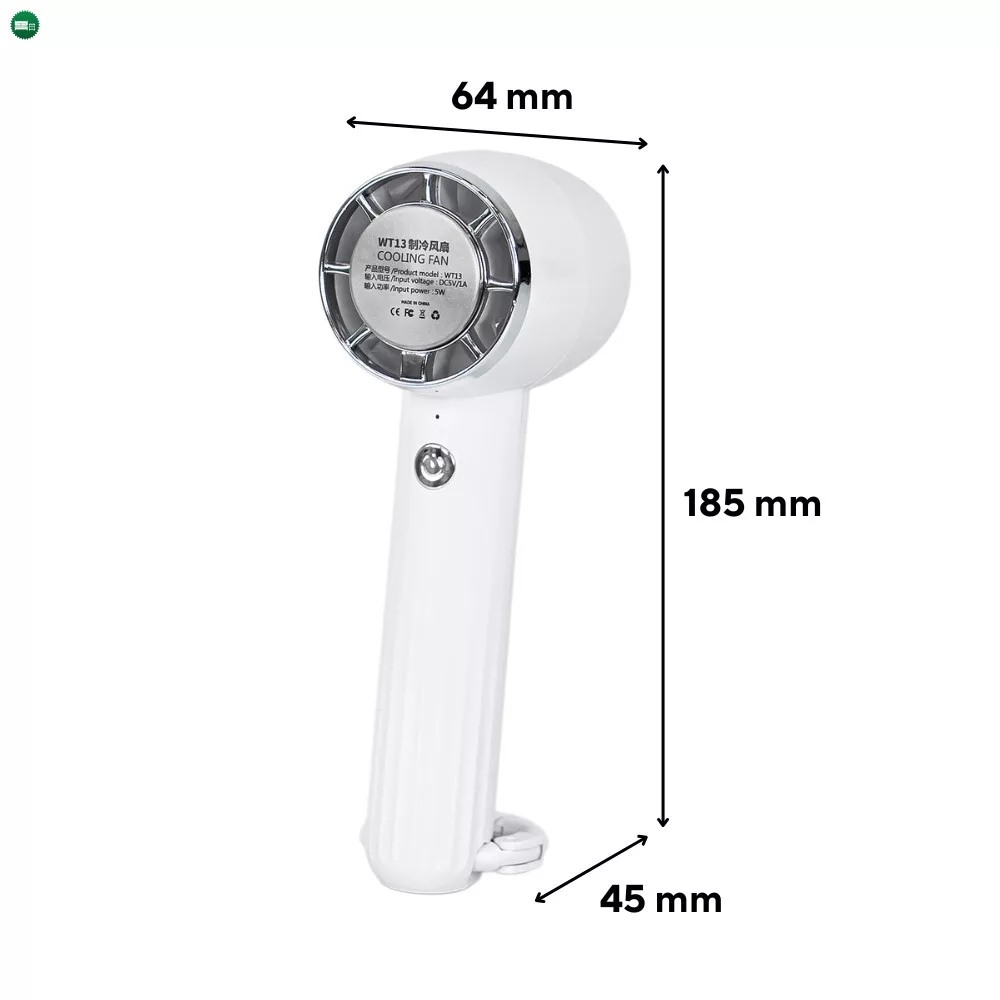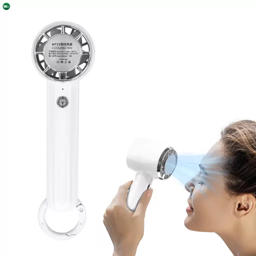 A ventilátor állítható döntési szögének köszönhetően nemcsak kézben használható, hanem stabilan az asztalra is állítható – így írás, munka vagy sminkelés közben is élvezheted a hűsítő hatást.