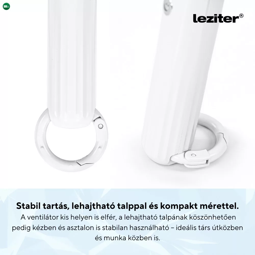 Ismerős az érzés, amikor egy megbeszélés közepén, a buszmegállóban vagy az irodában egyszerűen elfogy a levegő? A Leziter Rico hordozható ventilátor pontosan ezekre a pillanatokra született. A Leziter Rico egy elegáns, kompakt és csendes működésű kézi ventilátor, amely bárhol és bármikor hűsítő fuvallatot biztosít. Mindössze 185 mm magas, pehelykönnyű, így elfér a táskádban, fiókban vagy a kocsid kesztyűtartójában.