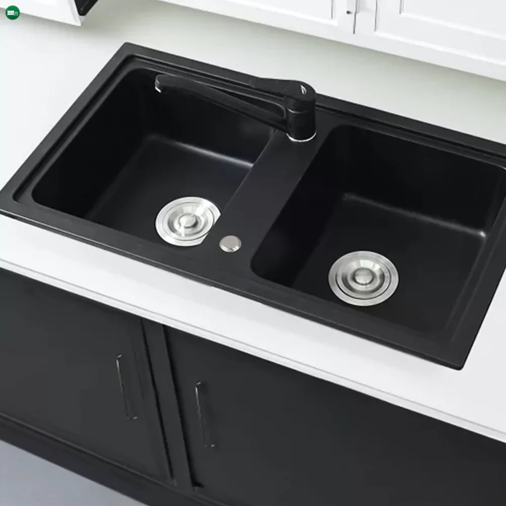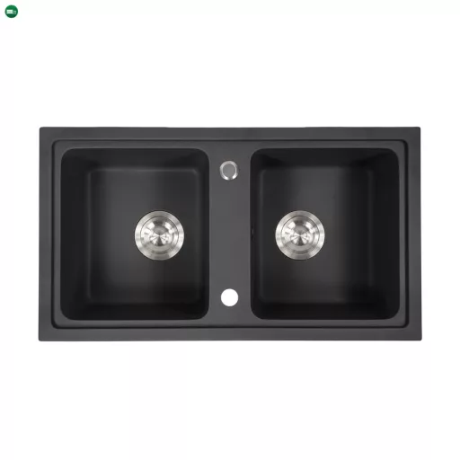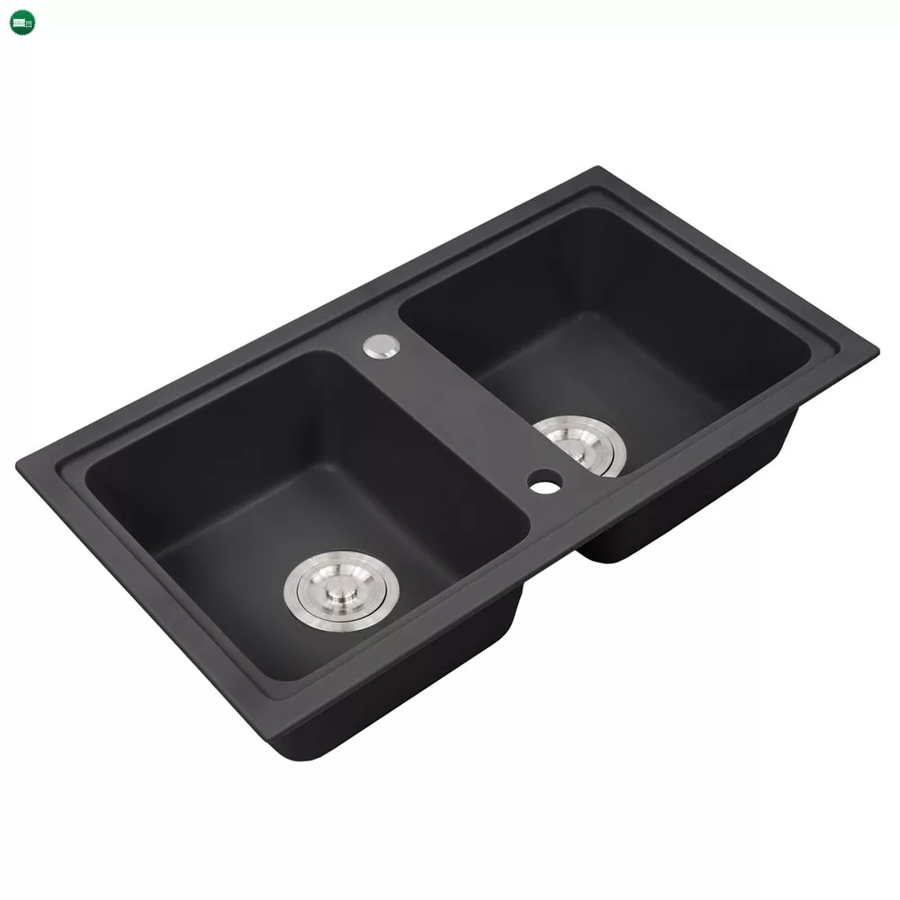 Tia Szögletes Fekete Gránit Mosogató - Két Medencével a Kényelemért és Eleganciáért