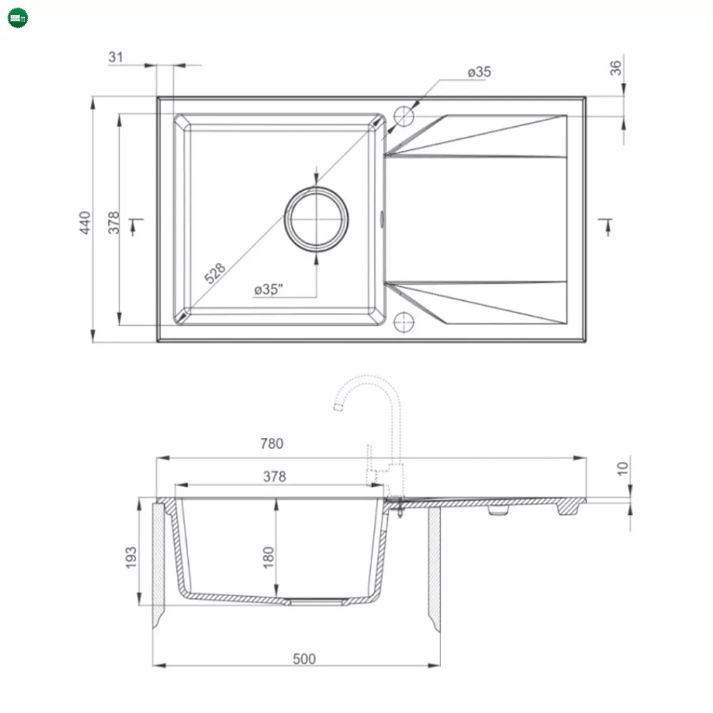 A Gori szögletes egy medencés gránit mosogató fekete színben egyaránt kielégíti a minőségi és stílusigényeket a konyhádban. A gránit kompozit anyag tökéletes kombinációja a kvarc homoknak és a gyantáknak, ami kiváló ütésállóságot, hőállóságot (akár 250°C-ig), elszíneződés- és termikus sokkállóságot biztosít az EN 13310 európai szabvány szerint.