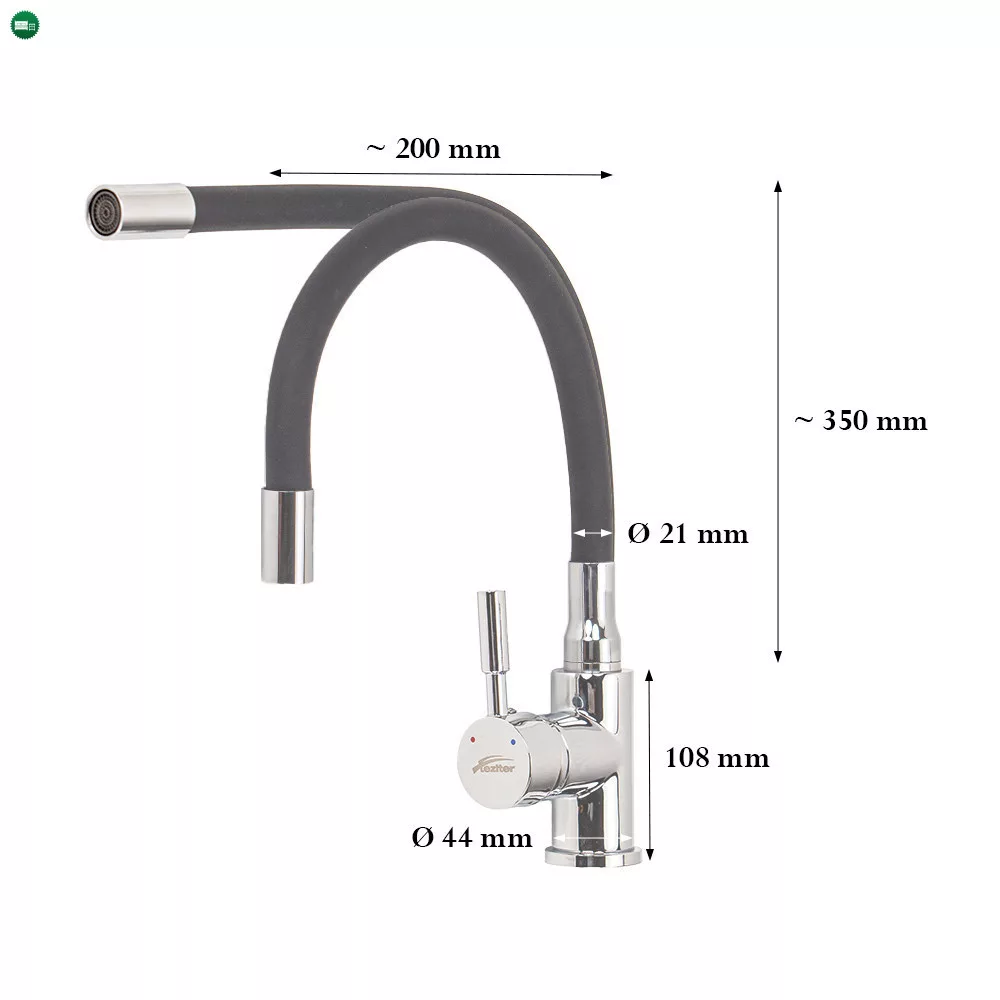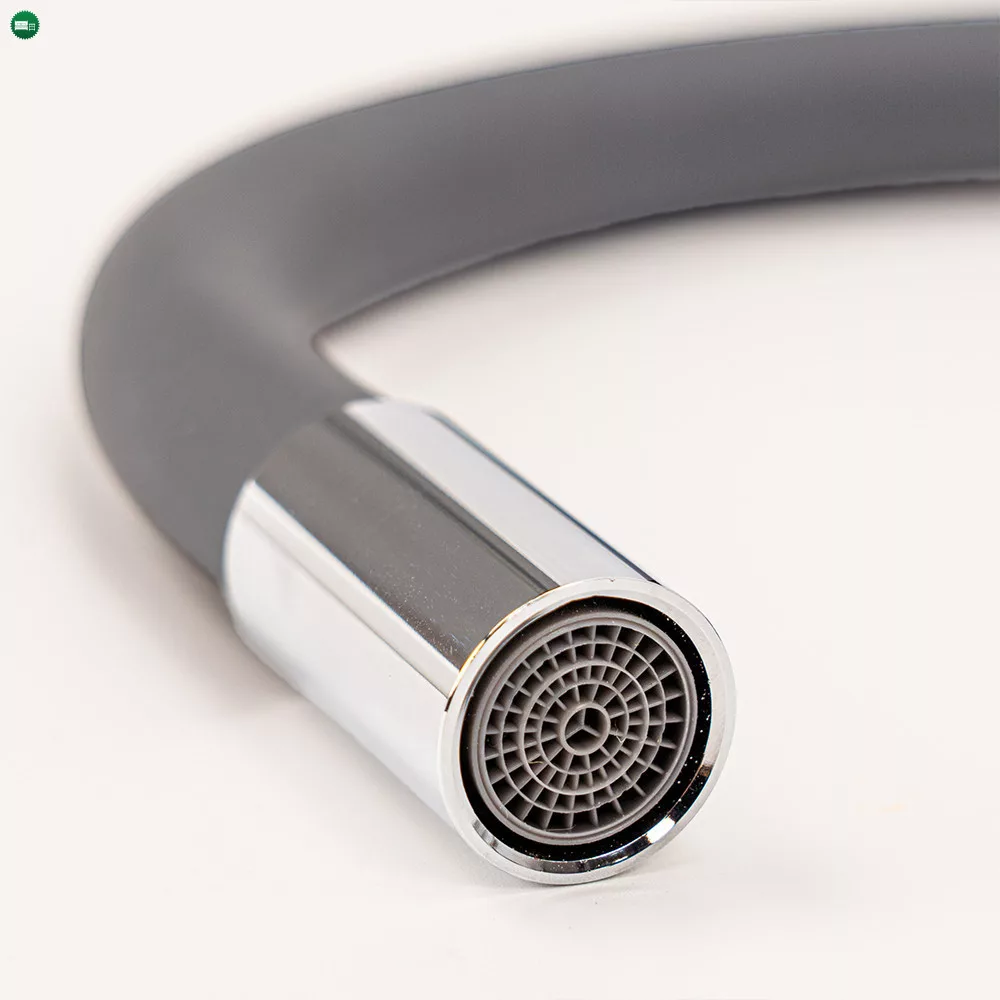 A szilikon bevonatú flexibilis cső lehetővé teszi, hogy a kifolyó formáját és magasságát szabadon alakítsd.