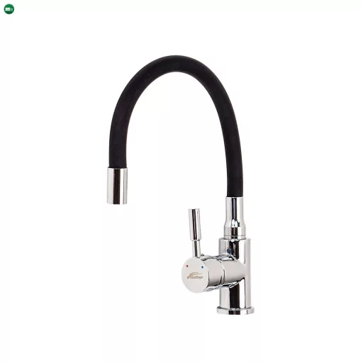 A fekete és króm színek elegáns megjelenést biztosítanak, miközben a rugalmas, 360°-ban forgatható kifolyócső maximális szabadságot nyújt a konyhai mindennapokban.