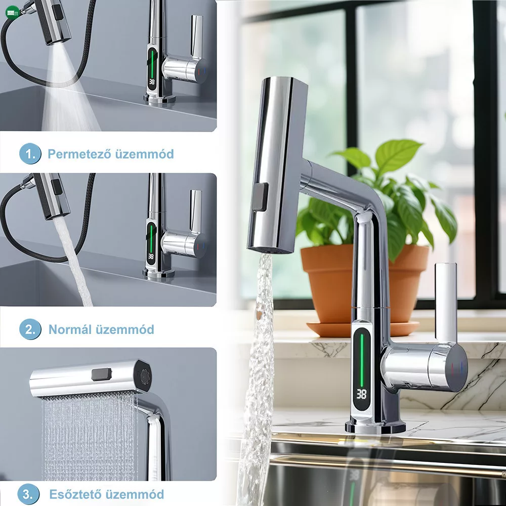 Mara mosogató csaptelep multifunkciós fejjel digitális kijelzővel