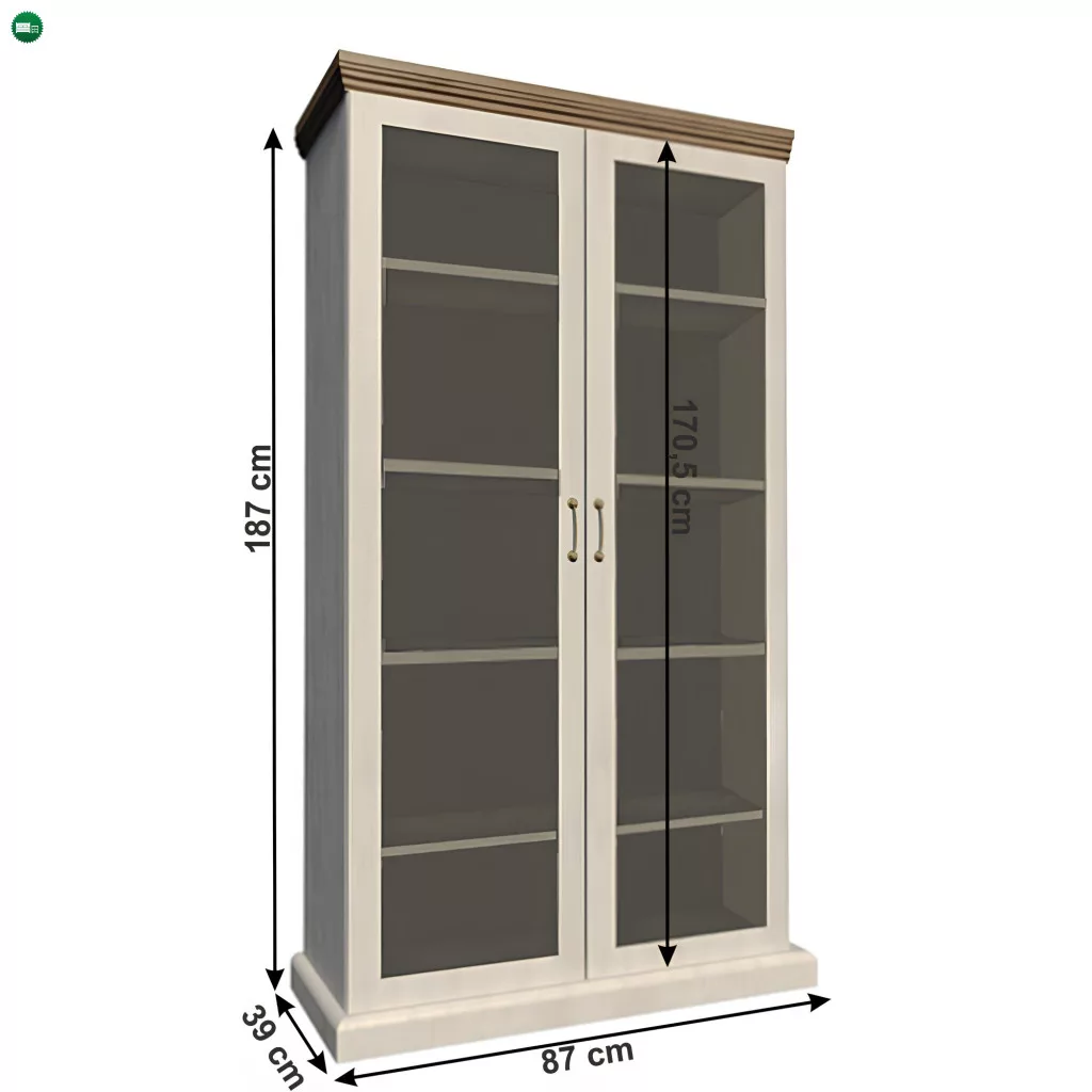 Vitrinszekrény WS, kétajtós öt polccal, az elegáns provence-i stílusú Royal elemes bútorcsaládból